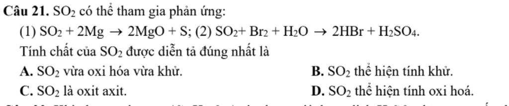 Vậy `SO_2` vừa oxi hóa vừa khử