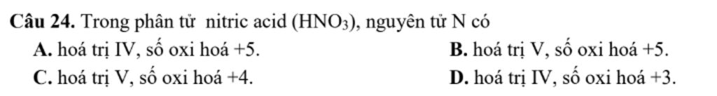 `->` $\rm N$ có hóa trị cao nhất là hóa trị $\rm IV$