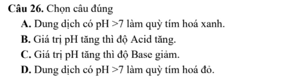 `->` $\rm pH>7$ tức đó là dung dịch có môi trường base nên làm quỳ tím hóa xanh .