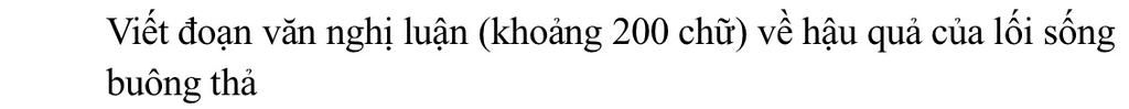 Có ý kiến cho rằng : "Buông thả là hành động của kẻ ngu xuẩn không có đủ trí óc để thả lỏng hoàn toàn". Vậy lối sống buông thả là gì ?Lối sống buông thả có ảnh hưởng như thế nào đến cuộc sống ? Đó là điều chúng ta cần bàn luận . Lối sống buông thả là cách sống mà cá nhân đặt lợi ích cá nhân và thú vui cá nhân lên hàng đầu, không tuân thủ kỉ cương, phép tắc, và đạo đức xã hội. Đây là sự thiếu lý tưởng, thiếu văn hóa và thiếu nhân cách. Nó thể hiện qua việc đua đòi, tiêu tiền không kiểm soát, và thiếu sự tự quản lý. Một lối sống cá nhân hoá này vào thể đưa xã hội vào một tình trạng giảm giá trị và phát triển khó khăn hơn . Nó thể hiện sự đua đòi không cần thiết ,thiếu văn hoá ,lịch sự và thường xuyên bất chấp những giá trị gia đình, xã hội và truyền thống văn hoá của đất nước.Cuộc sống buông thả có thể gây ra nhiều hệ luỵ không chỉ cho cá nhân mà còn đối với gia đình và bạn bè và xã hội . Nó bắt nguồn từ tư duy thiếu sự chín chắn và khi con người thường làm việc không đặt suy nghĩ sâu xa ,theo đuổi những sở thích riêng, bỏ bê việc học hành ,trở nên lười biếng và không chịu lao động dấn thân vào cuộc sống buông thả mà không có sự đầu tư và phấn đấu không có ý chí nghị lực ,họ dẽ dàng từ bỏ khi gặp khó khăn không có sự nỗ lực tiến bộ trong cuộc sống. Tất cả những điều này có thể khiến con người dần dần bị cuốn vào những vấn nạn xã hội và thái độ tiêu cực. Hệ lụy này ảnh hưởng lớn đến cả bản thân, gia đình, và xã hội.Lối sống buông thả có thể gây ra nhiều tác động tiêu cực đối với bản thân và xã hội. Trước hết nó , ảnh hưởng đến sức khỏe vì thường đi kèm với lối sống không lành mạnh, chế độ ăn uống kém, tình trạng căng thẳng và áp lực tâm lý, thậm chí có thể dẫn đến trầm cảm. Tóm lại lối sống buông thả là một cộng đồng xã hội hỗ trợ và sự hiểu biết từ người lớn tuổi cũng đóng vai trò quan trọng trong việc hướng dẫn và giúp đỡ thanh niên hiểu rõ hơn về những lựa chọn của mình, cũng như cách để sống một cuộc sống có ý nghĩa và mục tiêu. Như mọi thứ khác trong cuộc sống, lối sống buông thả cũng cần sự cân nhắc và cân đối. Điều quan trọng là không để cho việc “thả lỏng” trở thành lối sống thiếu trách nhiệm, mất kiểm soát, mà thay vào đó, biến nó thành một phần của việc phát triển cá nhân, tự do sáng tạo và khám phá bản thân một cách có ý thức.