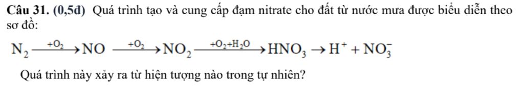 Câu 31. (0,5đ) Quá trình tạo và cung cấp đạm nitrate cho đất từ nước mưa được biểu diễn theo sơ đồ: