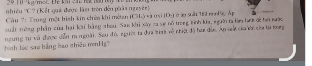 Áp suất riêng phần của `CH_4, O_2` lần lượt là: