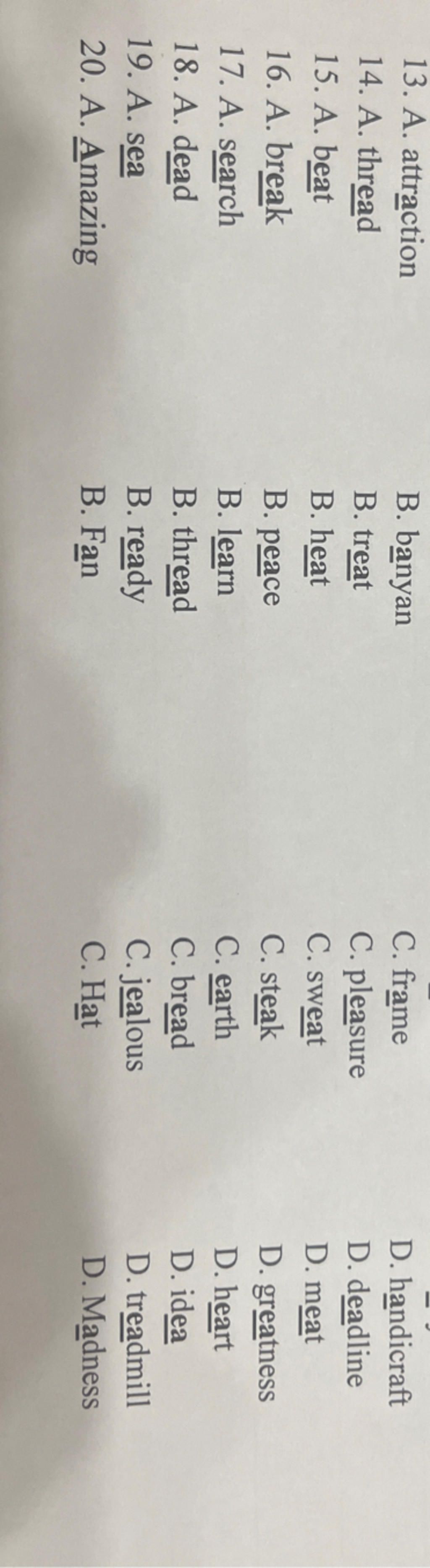 16. B /i:/ - /eɪ/