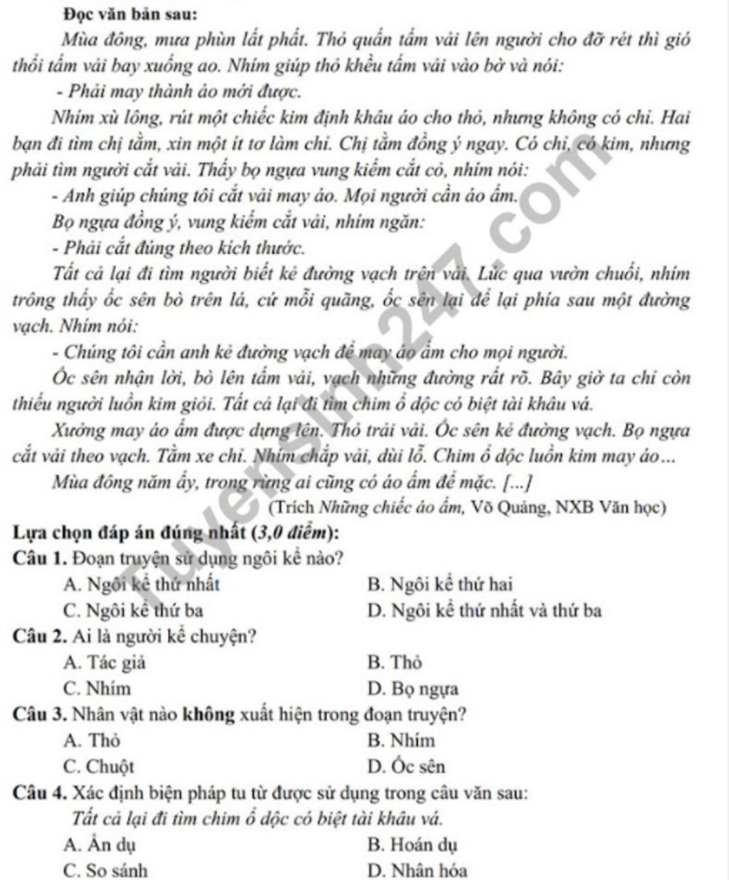 Câu 3. Nhân vật nào không xuất hiện trong đoạn truyện?