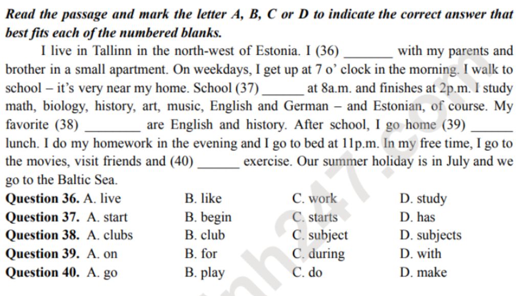 => Trường vào học lúc 8 giờ sáng và kết thúc lúc 2 giờ chiều.