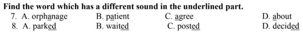 `7,` B (B âm /eɪ/, còn lại âm /ə/)