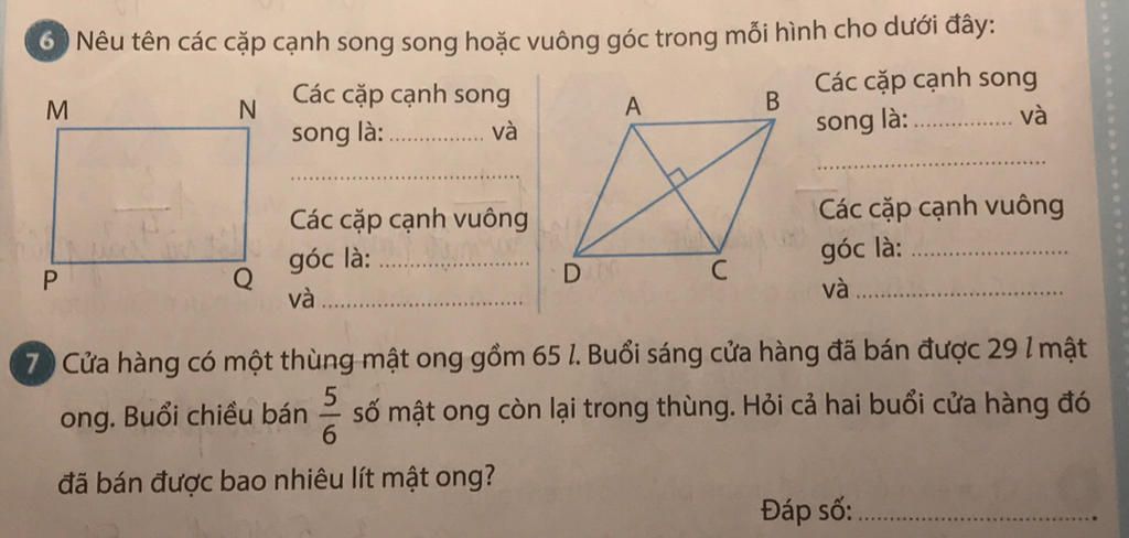 Các cặp cạnh vuông góc là: MP và PQ; NQ và QP