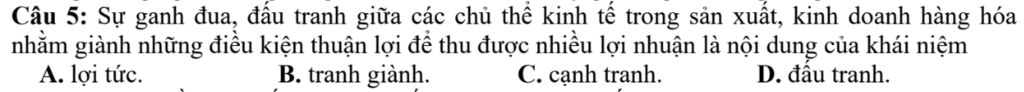 Câu 5: Sự ganh đua, đấu tranh giữa các chủ nhằm giành những điều kiện thuận lợi để thu
