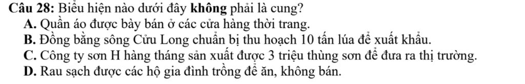 Câu 28: Biểu hiện nào dưới đây không phải là cung?