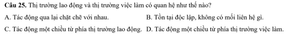 Câu 25. Thị trường lao động và thị trường việc làm có quan hệ như thế nào?