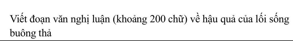 Lối sống buông thả có thể nói là một căn bệnh tai quái đang hiện hữu một cách ngang nhiên cuộc sống ngày nay. Nếu lối sống kỷ luật và có trách nhiệm là bàn đạp cho ta tiến nhanh hơn tới thành công, thì lối sống buông thả sẽ là " cú đạp" khiến ta rơi xuống vực thẳm của sự thất bại và tuyệt vọng. Lối sống buông thả là sự thiếu kỷ luật, trách nhiệm với mọi công việc trong cuộc sống; là sống không có mục tiêu, chỉ biết quan tâm tới lợi ích cá nhân thấy vì lợi ích chung của cả một cộng đồng. Chúng ta cần loại bỏ ngay lối sống này vì nó sẽ khiến ta không có sự kỷ luật và trách nhiệm trong mọi công việc của cá nhân lẫn cộng đồng. Song là khiến cuộc sống của ta dần mất định hướng; cuộc đời ta sẽ mãi chỉ là chiếc thuyền trôi lênh đênh, vô định giữa biển khơi vô tận không thấy bờ. Lâu dần sẽ ta trở thành gánh nặng và tác động tiêu cực đến sự phát triển chung của xã hội. Bên cạnh đó, căn bệnh này còn dẫn đến nhưng sự xáo trộn trong đời sống thể chất lẫn tinh thần của mỗi cá nhân. Và hơn hết là gây ra sự suy tàn về mặt đạo đức; khiến ta đánh mất đi giá trị bản thân cũng như cái nhìn tốt đẹp về ta trong mặt mọi người xung quanh. Khi sống buông thả khiến con người ta dễ mắc phải sai lầm, dễ mất đi ý chí và nghị lực. Từ đó sẽ bỏ lỡ những cơ hội để phát triển, khẳng định bản thân và cuối cùng là sống trong sự nuối tiếc, thất bại. Chỉ vì sống buông thả; thế nên, các bạn trẻ luôn mang suy nghĩ thoáng hơn về tình yêu và tình dục dẫn đến vấn đề “tình một đêm” hay “quan hệ trước hôn nhân” trở nên quen thuộc. Và những con người ấy đã phải một cái trả giá đắt cho hành động của mình. Người thì bị coi thường, ruồng bỏ. Nặng hơn là bin bệnh tật, mang thai ngoài ý muốn, phá thai rồi vô sinh, hay thậm chí là mất mạng. Thật sự cái hậu quả mà nó để lại là quá lớn! Tuy nhiên, không vì thế mà ta sống quá kỷ luật vì khi ấy ta lại tự đặt ra cho mình một khuôn mẫu và sự giới hạn đối với bản thân. "Tương lai được mua bằng hiện tại” và buông thả chính là đùa giỡn với tương lai của chính mình. Sống buông thả là một cách vô định, không mục tiêu; sống thiếu trách nhiệm. Đừng như vậy để rồi chôn vùi tương lai xuống sâu dưới lòng đất mà mà hãy vươn lên để tỏa bóng mát cho đời.