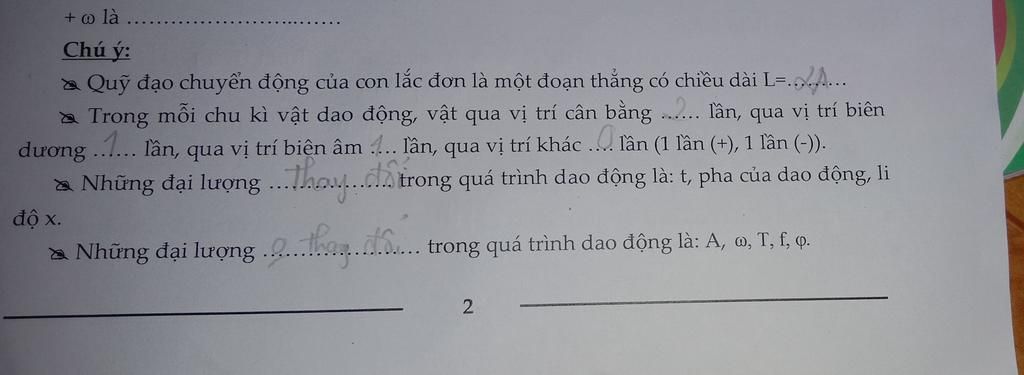Trong mỗi chu kì vật dao động, vật qua vị trí cân bằng ...`2`... lần, qua vị trí biên dương ...`1`... lần, qua vị trí biên âm ...`1`... lần, qua vị trí khác ...`2`... lần (1 lần (+), 1 lần (-)).