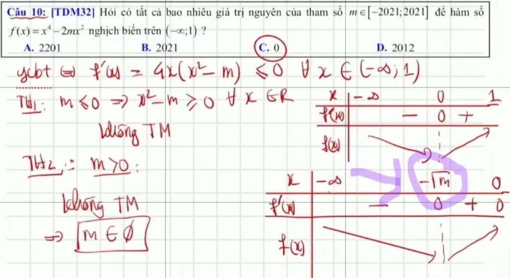 Câu 10: (TDM32| Hỏi có tất cả bao nhiêu giá trị nguyên của tham số mel-2021;2021] để hàm số