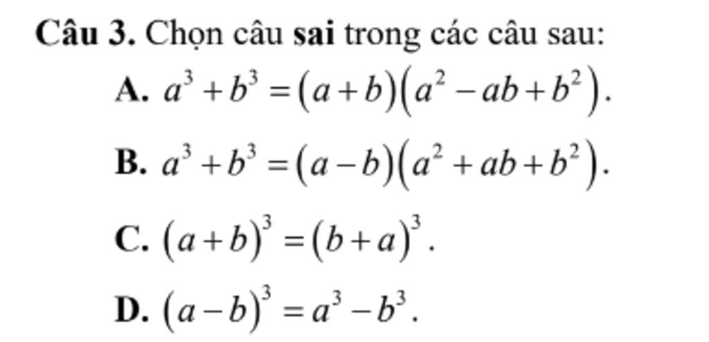 B. a³ +b³ = (a−b)(a² +ab+b²). (sai)