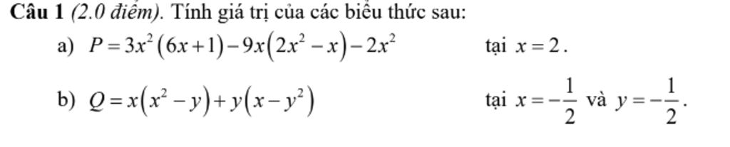 b) Q = x(x² − y) + y(x−y²) tại x=`-1/2` và y= `-1/2`