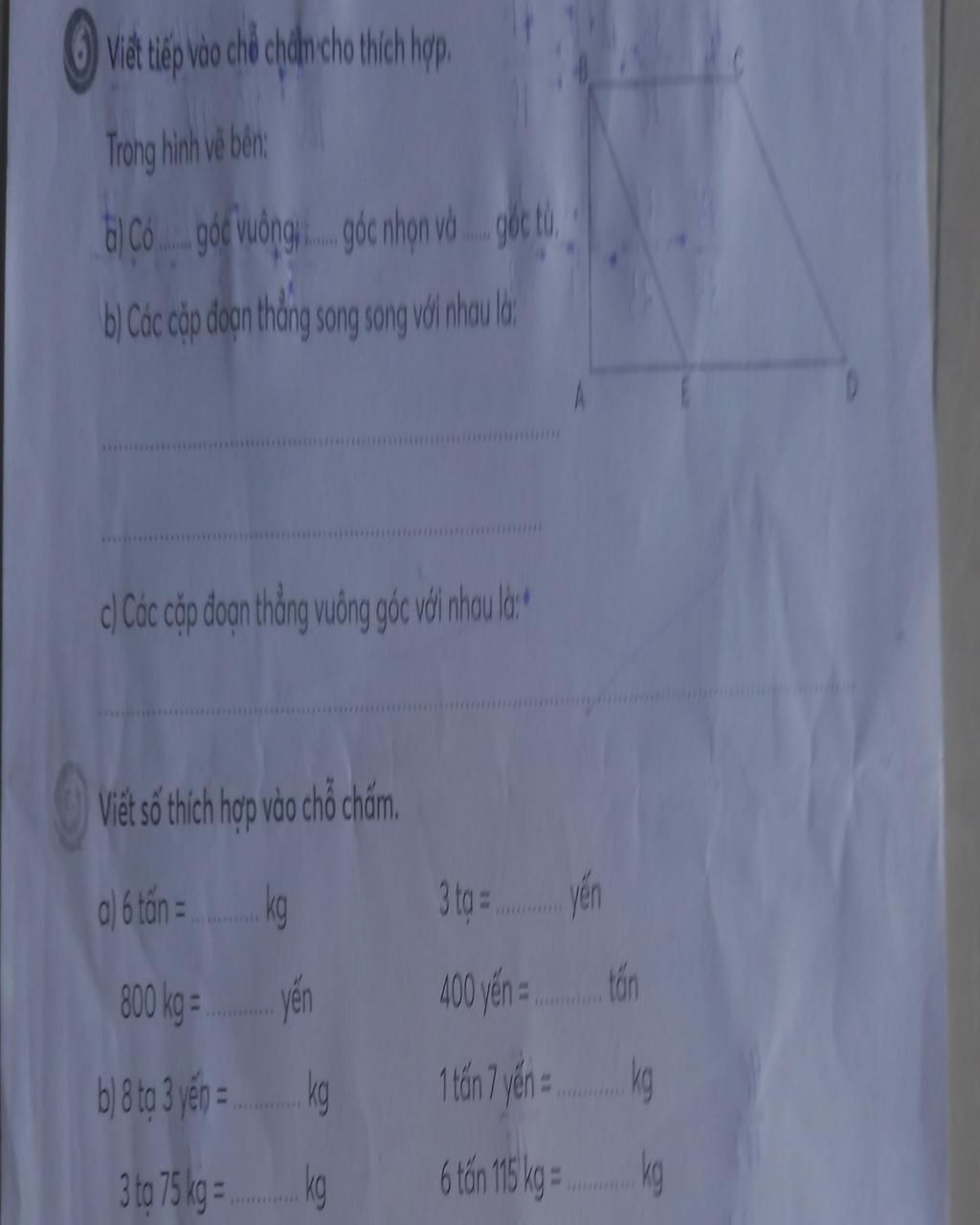 7. a, 6 tấn = 6000 kg 3 tạ = 30 yến