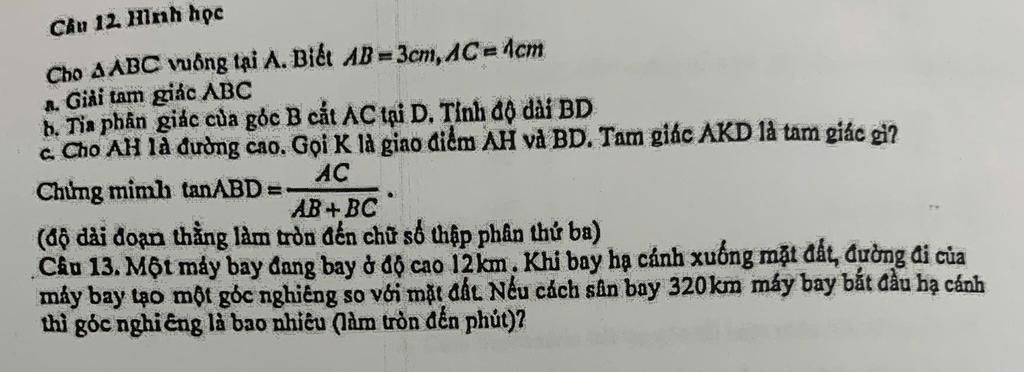 a.Ta có: $\Delta ABC$ vuông tại $A$