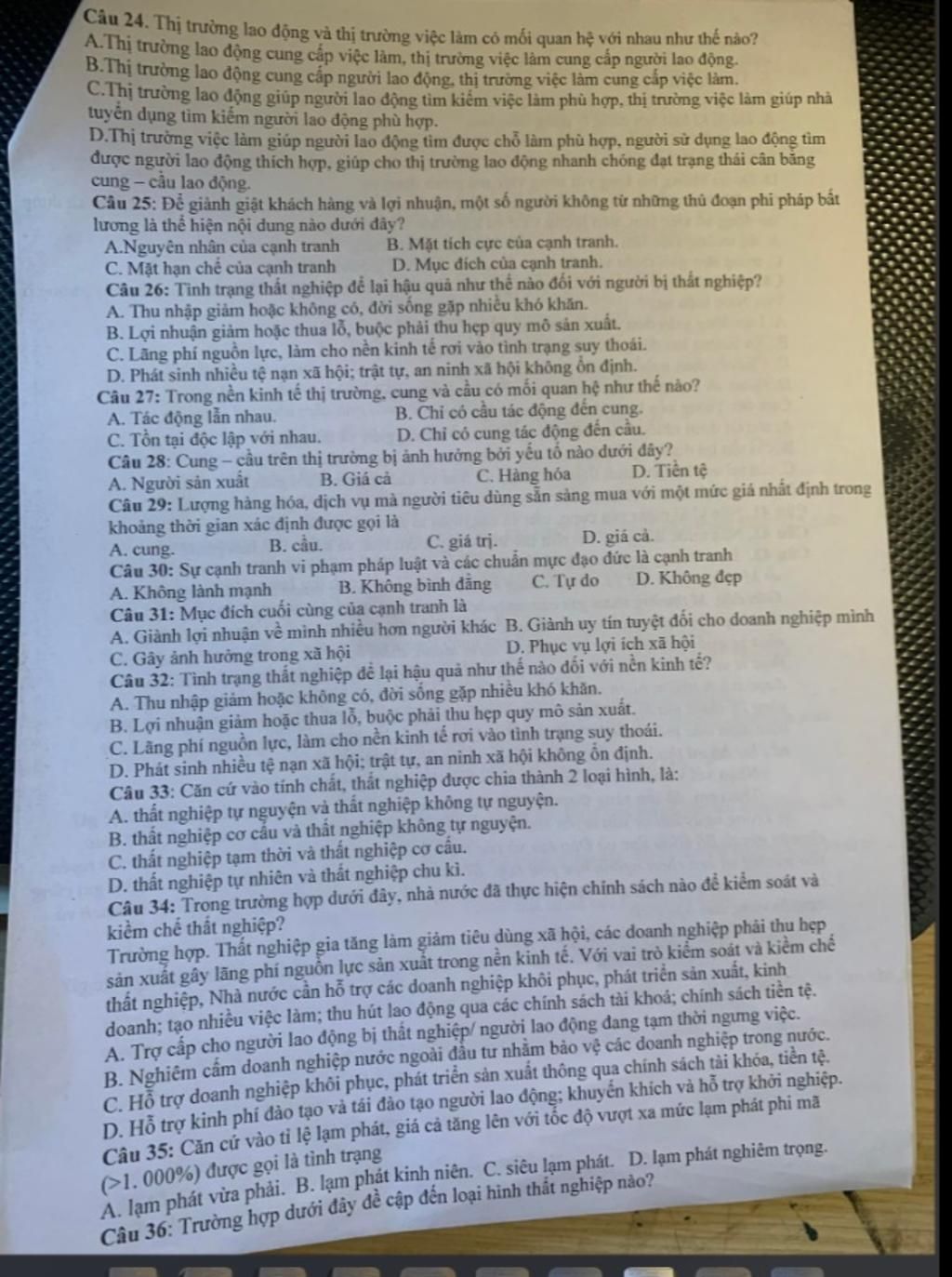 Câu 24. Thị trường lao động và thị trường việc làm có mối quan hệ với nhau như thế nào?