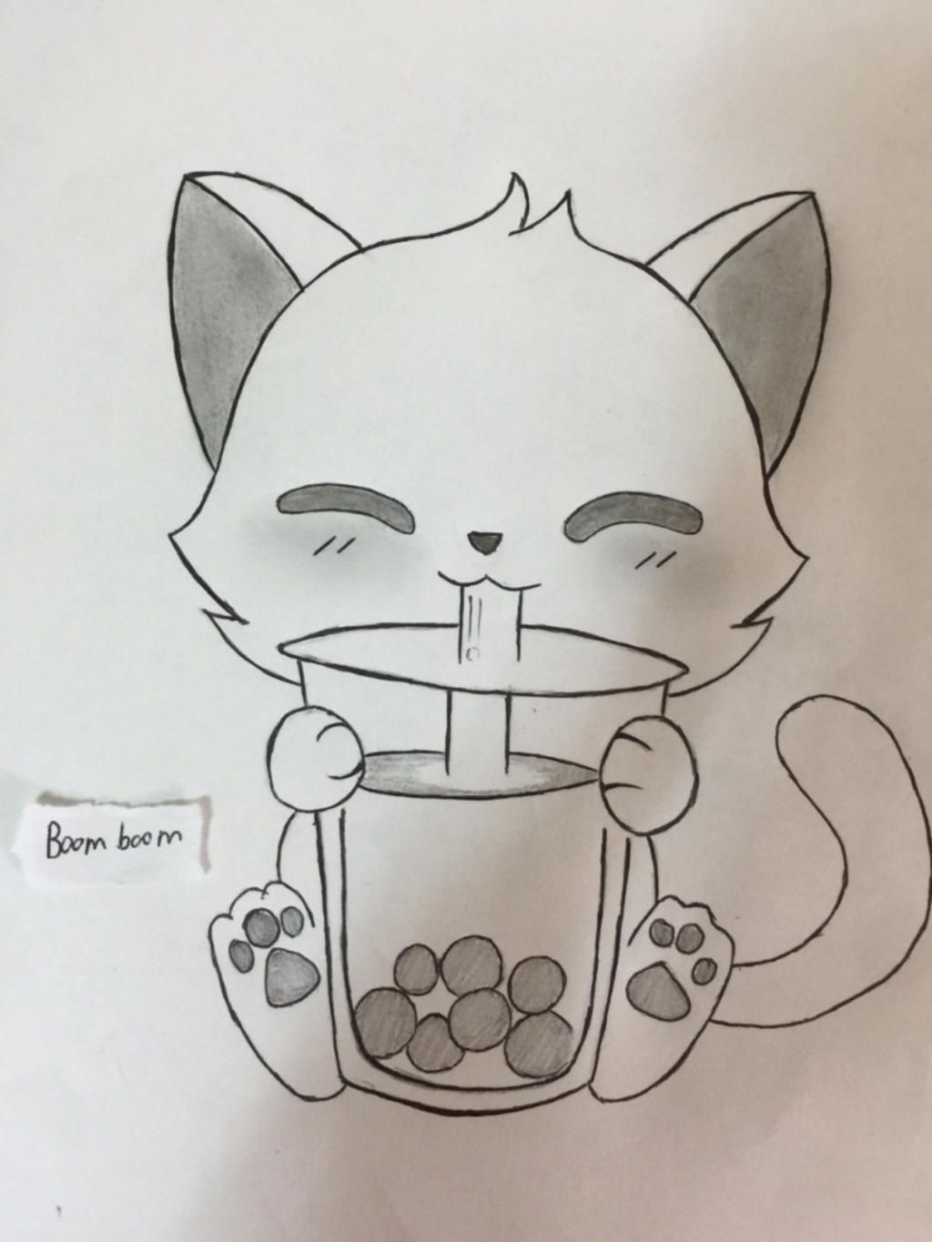 Mik có bé mèo đg uống trà sữa vì cũ r nên mi tặng kèm 1 pé hồ li @@