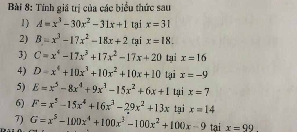 5) E=x³-8x+9x³-15x²+6x+1 tại x = 7
