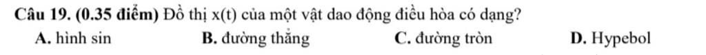Câu 19. (0.35 điểm) Đồ thị x(t) của một vật dao động điều hòa có dạng?