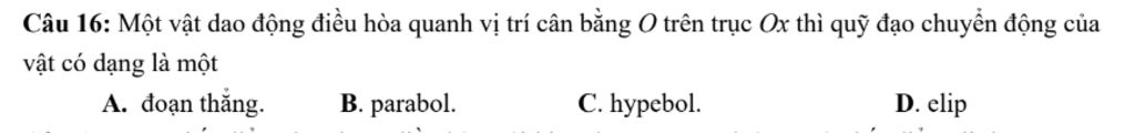 Trong dao động điều hòa, vật dao động qua lại quanh vị trí cân bằng O trên một trục, do đó quỹ đạo chuyển động của nó là một đoạn thẳng dọc theo trục đó.