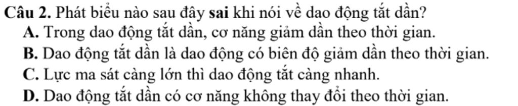 Phát biểu này sai vì trong dao động tắt dần, cơ năng giảm dần theo thời gian do có sự tiêu tán năng lượng (thường do lực ma sát hoặc lực cản), do đó cơ năng không thể không thay đổi.