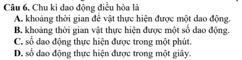 Lí thuyết: Chu kì của dao động điều hòa là khoảng thời gian ngắn nhất để vật thực hiện một dao động