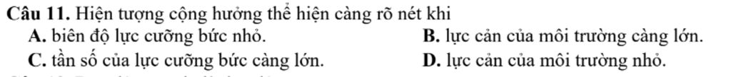 Định nghĩa: Hiện tượng cộng hưởng xảy ra càng rõ nét khi lực cản, ma sát càng nhỏ