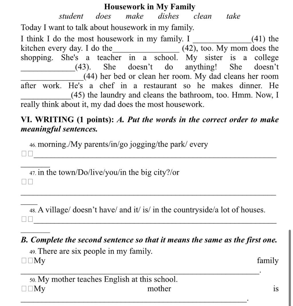 49. My family has six people.
