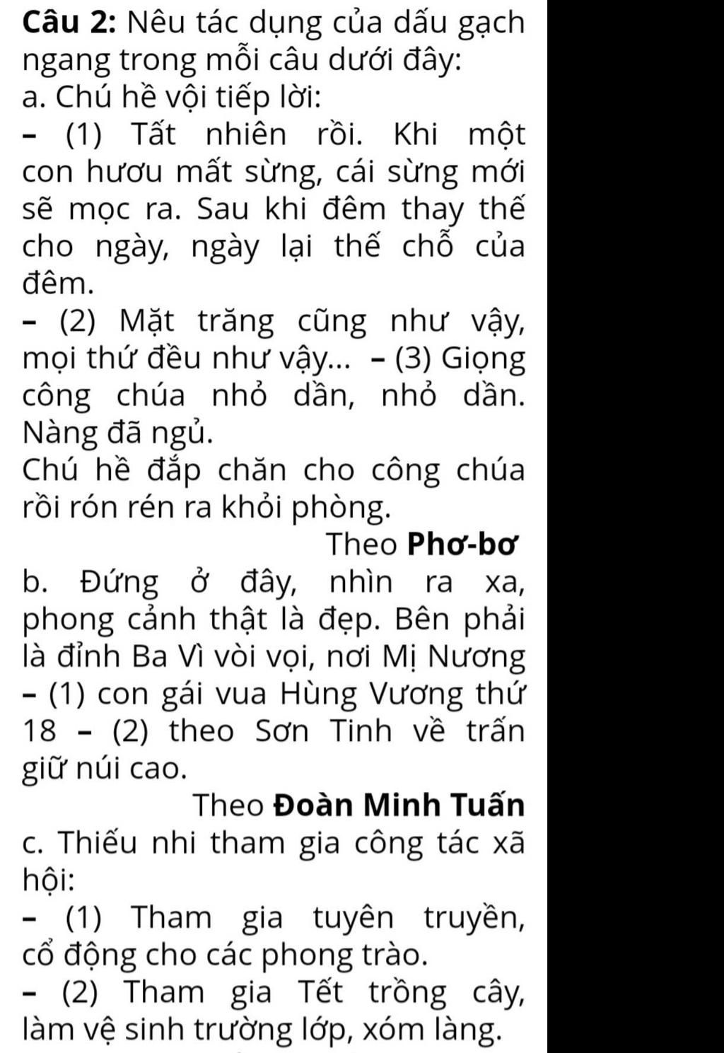 Giải thích: dấu gạch ngang ở vị trí (1), (2) đánh dấu phần thông tin chú thích về công chúa Mị Nương