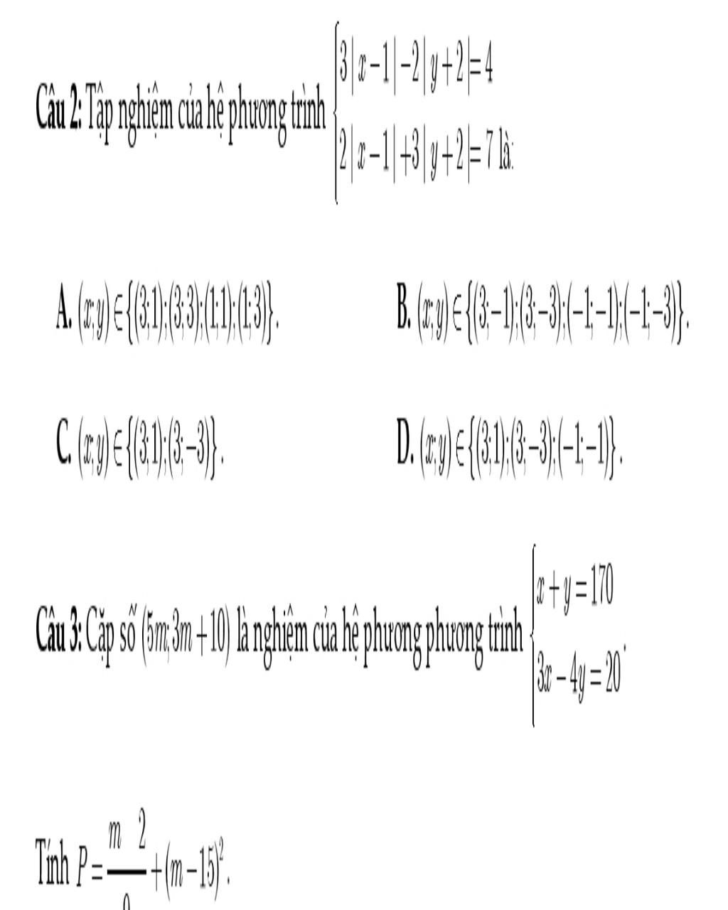 Câu 3:Cặp số là môn 1) là nghiệm của hệ phương phương tinh