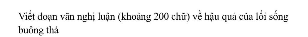 Có bao giờ bạn tự hỏi hậu quả cho lối sống buông thả của bản thân liệu ta có gánh nổi không? Bởi lẽ "Sống buông thả... là thêm một lần trả giá". Hiểu đơn giả thì sống buông thả là sống thiếu kỷ luật, trách nhiệm; sống không có mục tiêu hay lí tưởng và chỉ biết quan tâm tới lợi ích cá nhân thấy vì lợi ích chung của cả một cộng đồng. Chúng ta cần loại bỏ ngay lối sống này vì nó sẽ khiến ta không có sự kỷ luật và trách nhiệm trong mọi công việc của cá nhân lẫn cộng đồng. Song là khiến cuộc sống của ta dần mất định hướng; cuộc đời ta sẽ mãi chỉ là chiếc thuyền trôi lênh đênh, vô định giữa biển khơi vô tận không thấy bờ. Lâu dần sẽ ta trở thành gánh nặng và tác động tiêu cực đến sự phát triển chung của xã hội. Bên cạnh đó, căn bệnh này còn dẫn đến nhưng sự xáo trộn trong đời sống thể chất lẫn tinh thần của mỗi cá nhân. Và hơn hết là gây ra sự suy tàn về mặt đạo đức; khiến ta đánh mất đi giá trị bản thân cũng như cái nhìn tốt đẹp về ta trong mặt mọi người xung quanh. Khi sống buông thả khiến con người ta dễ mắc phải sai lầm, dễ mất đi ý chí và nghị lực. Từ đó sẽ bỏ lỡ những cơ hội để phát triển, khẳng định bản thân và cuối cùng là sống trong sự nuối tiếc, thất bại. Nhìn vào thực tế cuộc sống ngày nay mà xem, sống buông thả khiến nhiều người coi việc " quan hệ tình dục" như một thú vui để trải nghiệm mà không quan tâm đến những hệ lụy sau đó. Như vụ việc một cô gái sinh con rồi ném qua ô cửa thông gió nhà vệ sinh, xảy ra tại tổ hợp chung cư HH Linh Đàm (quận Hoàng Mai, Hà Nội) chỉ vì "mang thai" ngoài ý muốn. Đây chỉ là một trong vô vàn hệ lụy do lối sống buông thả gây ra. Nhưng suy cho cùng thì tất cả rồi cũng sẽ phải trả giá cho những hành vi sai trái của bản thân mà thôi! Song đừng đánh đồng giữa sống buông thả với sống thưởng thức; vì sống buông thả là chạy trốn cuộc sống để tìm kiếm một cảm giác dễ chịu hơn, còn sống thưởng thức tự nguyện để bản thân được thấy thoải mái hơn. Thời gian là liều thuốc xóa đi tất cả những thứ đau lòng nhưng nếu vì sự buông thả của bản thân ở hiện tại mà gây ra hệ lụy cho tương lại thì thời gian lại là thứ khắc sâu khiến nỗi đau khó lòng xóa bỏ.