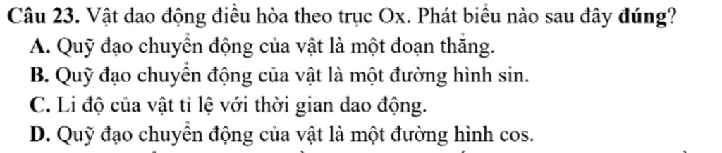 `bbB,bbD` sai vì `A` sai vì vật dao động trên trục Ox thì quỹ đạo có dạng đường thẳng