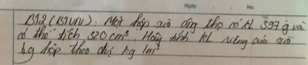 Vậy khối lượng riêng của hộp sữa ông thọ là: `1240,625` (kg/m³)`