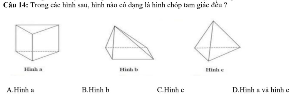 Câu 14: Trong các hình sau, hình nào có dạng là hình chóp tam giác đều ?
