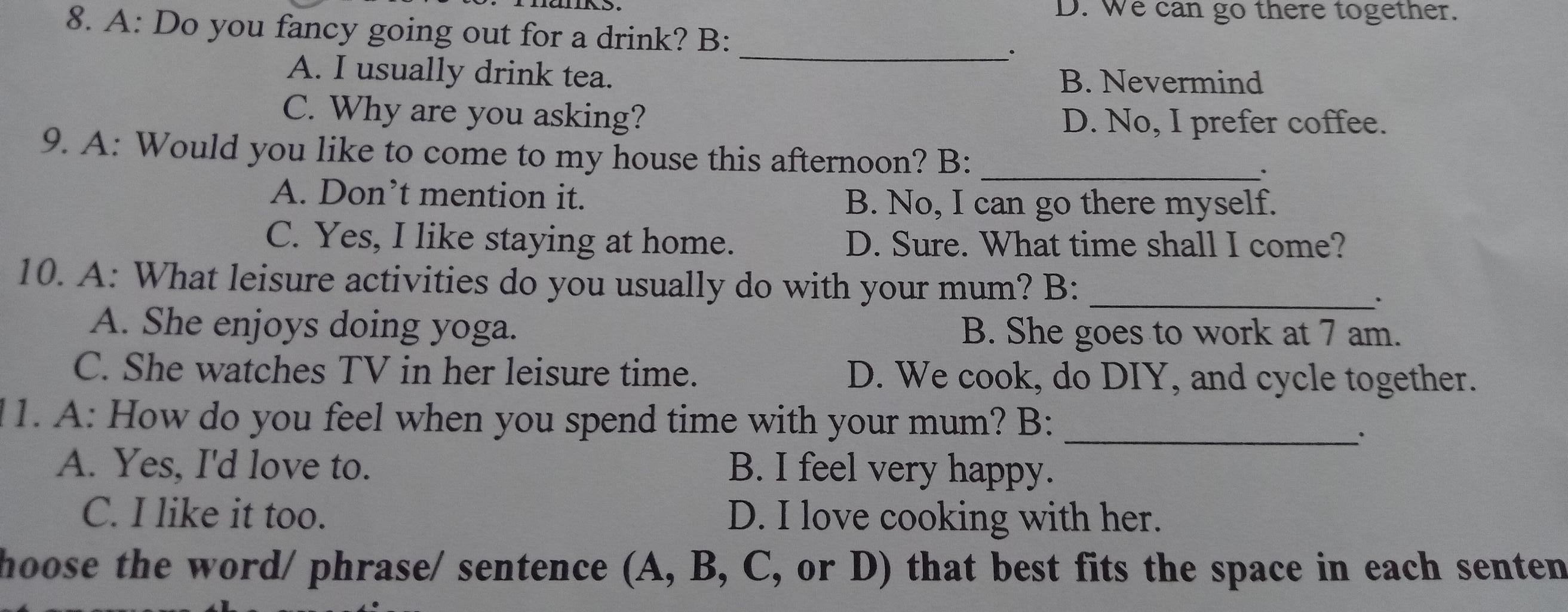 Câu `8:` D. No, I prefer coffee.