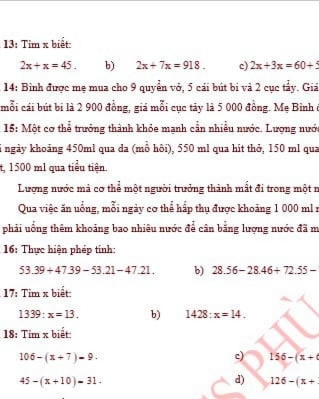 14: Bình được mẹ mua cho 9 quyển vở, 5 cái bút bi và 2 cục tẩy. Giả