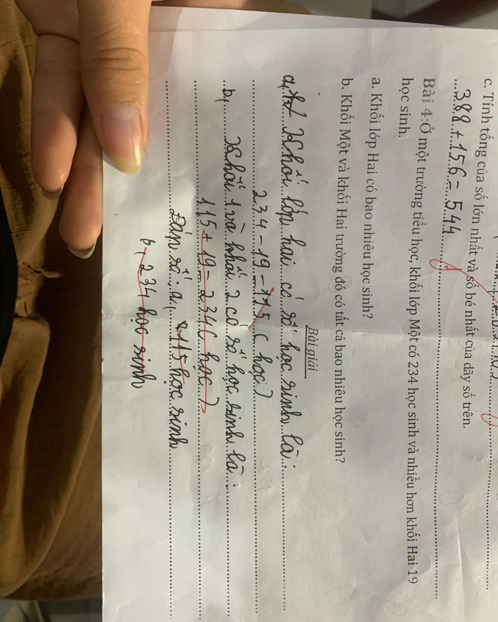 `234-19=215` (học sinh)