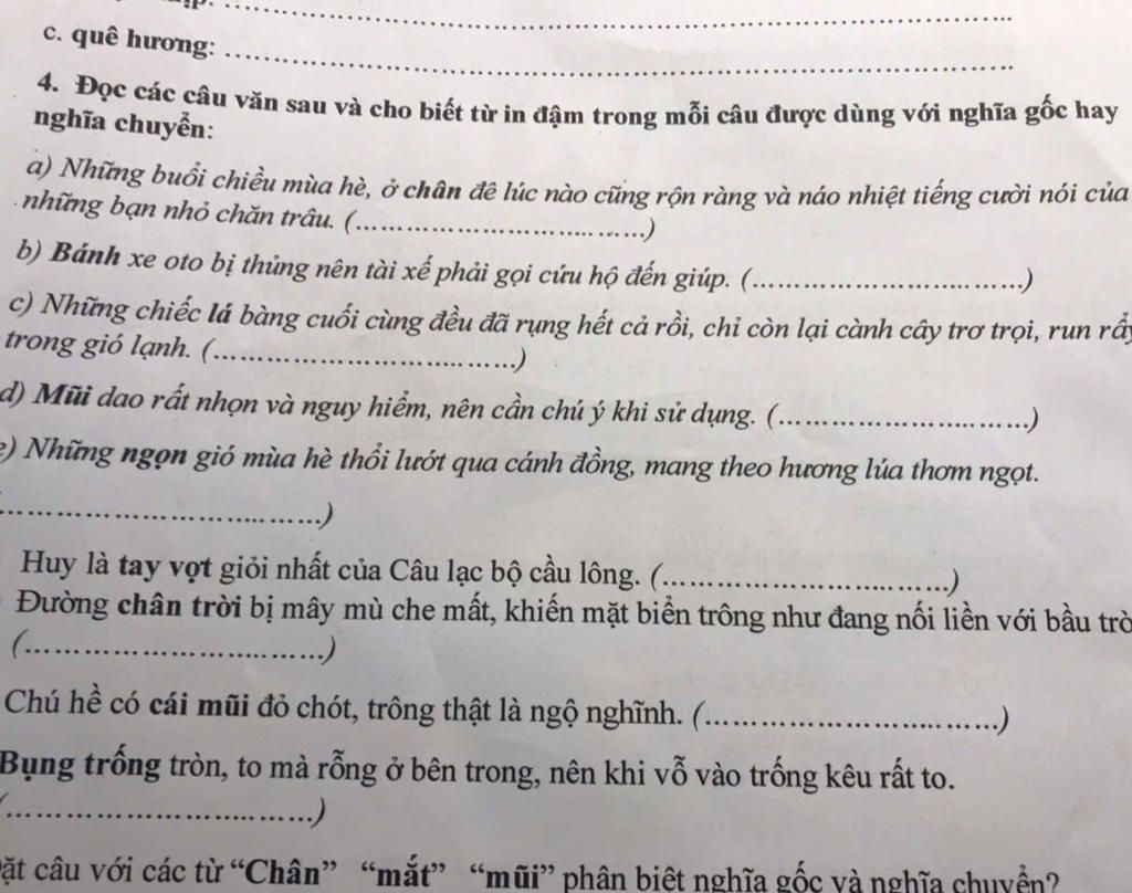 Câu a từ chân là chân đê nó là nghĩa chuyển