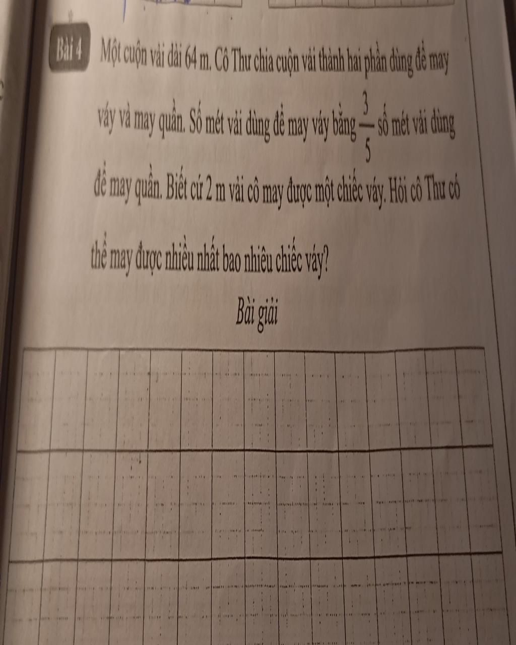 Cô Thư có thể may được số cái váy đó là ` : `