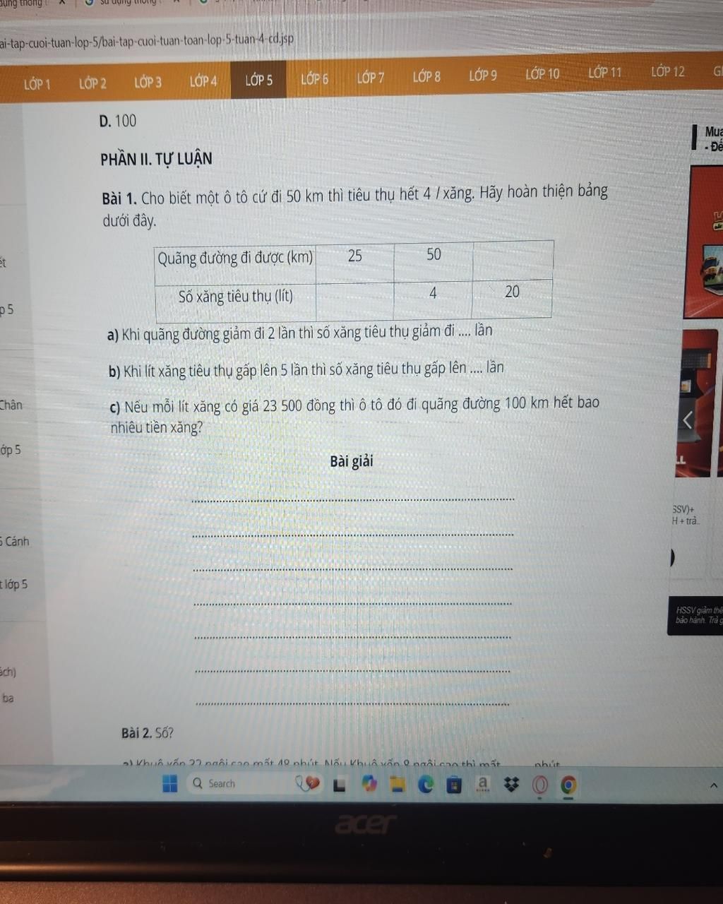 Nếu quãng đường gấp lên `5` lần thì số xăng tiêu thụ gấp lên `5` lần
