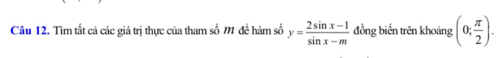Để hàm số đồng biến trên $(0,\dfrac{\pi}2)$