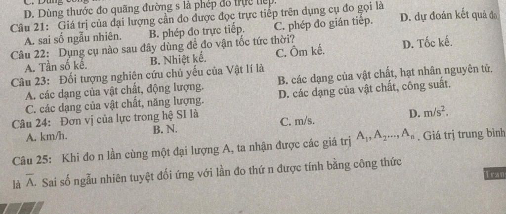 Giá trị của đại lượng cần đo được đọc trực tiếp trên dụng cụ đo gọi là B. phép đo trực tiếp.
