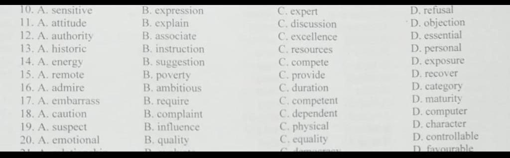 10. Không có đáp án, lần lượt là 1 - 2 - 1 - 2