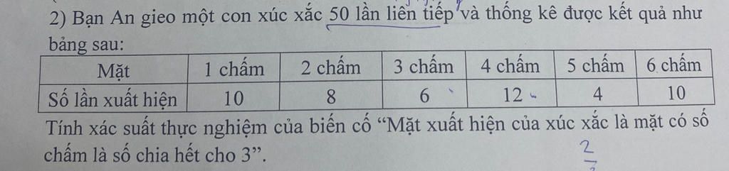 Mặt chia hết cho `3` xuất hiện số lần là: