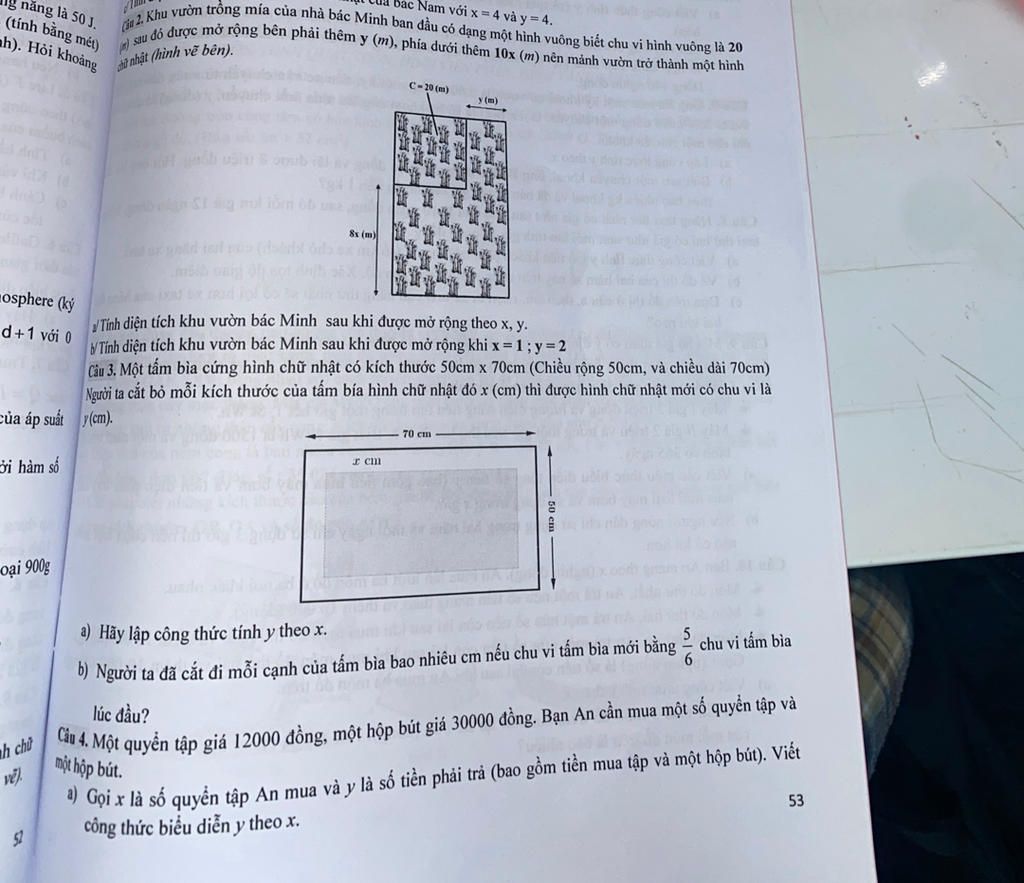 a) sau đó được mở rộng bên phải thêm y (m), phía dưới thêm 10x (m) nên mảnh vườn trở thành một hình