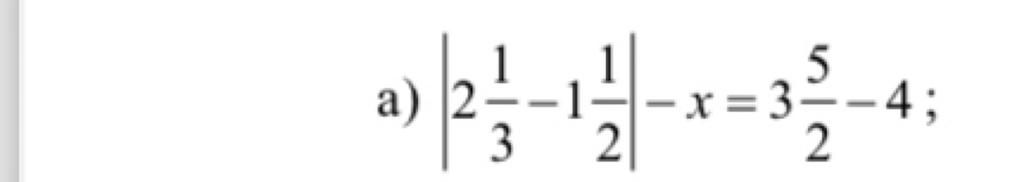 `a)` `|2 1/3 - 1 1/2| - x = 3 5/2 - 4`