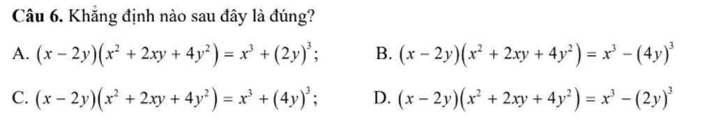 D. (x - 2y)(x² + 2xy + 4y²) = x³ - (2y)³