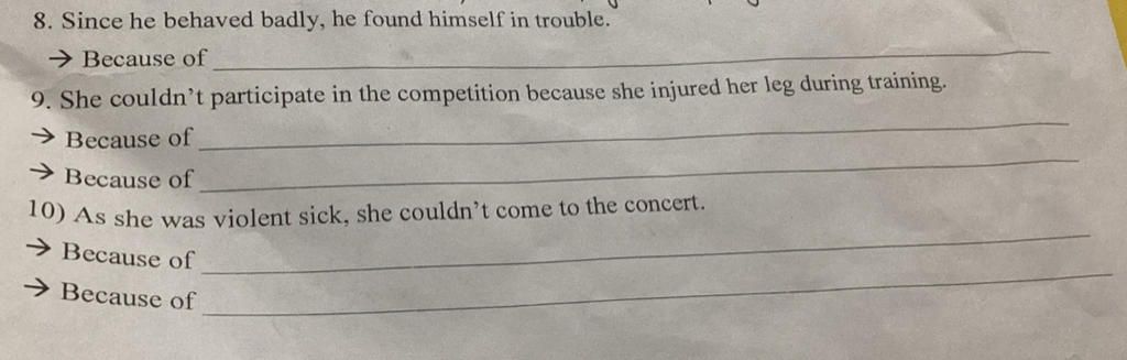 8. Since he behaved badly, he found himself in trouble.